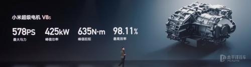 不过不用担心,小米汽车也是一位技术宅,小米超级电机V8s正式登场!V8s的最高转数达到27200rpm,峰值功率为425kW,峰值扭矩为635N·m。