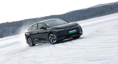 首先参与测试的ID.7 VIZZION PRIME版采用前后双电机四驱动力输出,在冰面上依然有着充沛的动力表现,其能够主动进行动态的扭矩分配,在冰面上也能拥有足够的抓地力,保持车身的稳定性同时满足用户对于激烈驾驶的操控需求。一汽-大众旗下ID.家族全系凭借MEB平台的技术优势,通过短悬长轴设计来降低车身重心,增大转向角和前后配重比50:50等设计,体现出了其德系车型的操控品质,同时转向反馈灵敏,动力和制动力输出线性,即使在冰面上依然有着稳定和优雅的行驶品质。