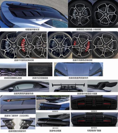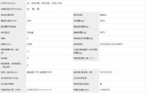 动力部分,新车搭载四电机系统,四个电机的最大功率均为240kW,综合功率为960kW,等效1306马力!尺寸方面,新车长宽高分别为4966/2029/1295(1338)mm,轴距为2900mm。