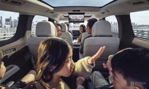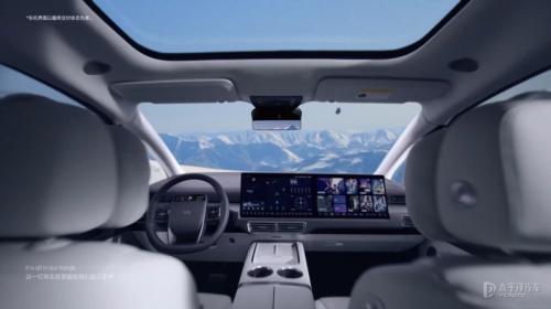 再来说说屏幕吧。前排双连屏设计还在,但屏幕升级成了OLED G4,支持1100nit高亮,亮度提升了60%,还有PWM高频智能光调节,长时间看也不会伤眼睛。第二排屏幕是吸顶屏,但屏幕尺寸变大了,变成了17英寸,还加了个摄像头。