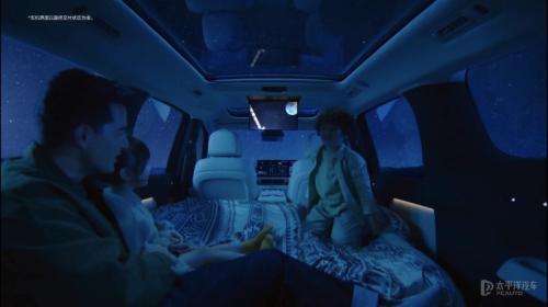 最厉害的是,车顶有个8.62平方米的全景天窗,第三排窗户也超长,整个座舱都非常亮堂。座椅也全部用了Nappa真皮,功能齐全。第二排座椅滑轨有500mm,最大腿部空间达到了1278mm,跟奔驰迈巴赫S400有得一拼。
