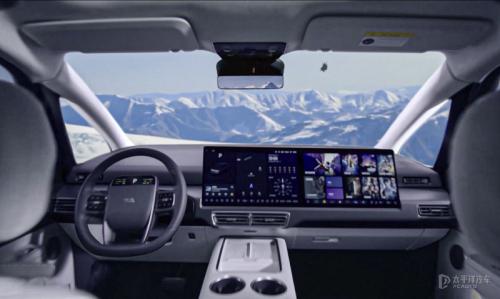 不过,理想MEGA还是有一些小变化的。比如前IP台设计得更丰富了,用了翻毛皮材质,车顶还有丝绒顶棚,镀铬颜色还多了个深咖色。但是啊,它没有木纹装饰,也没有设计仪表盘,其实完全可以把方向盘上的安全驾驶屏去掉,然后在前IP台上放一个8英寸左右的小屏。不过呢,理想可能觉得这样不太划算,毕竟要最大程度复用零部件嘛。