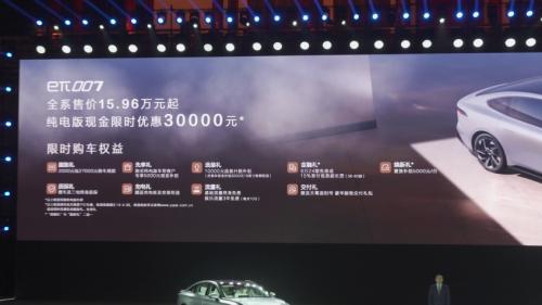 2024年3月14日,东风奕派eπ007正式迎来上市,新车保持与此前大定时公布的售价相同,共推出四款车型,售价区间为15.96-19.96万元。新车定位中大型车,拥有增程(纯电续航200km、综合续航1200km)和纯电动版本(续航530-620km)。在公布价格的同时,官方还公布了上市权益,其中包含2000元抵27000元购车尾款、纯电5000元现金补贴以及选装、置换、金融、质保等方面的优惠。