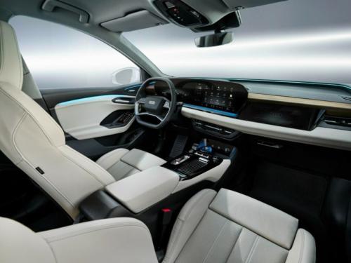 内饰方面,Q6 e-tron的中控台布局同样让人眼前一亮。中央位置摆放着11.9英寸液晶仪表和14.5英寸中控触摸屏,环抱式设计从车门延伸至整个座舱,营造出宽敞舒适的空间感。新车还将搭载全新的基于安卓车载系统的车载信息娱乐平台,并支持OTA升级。