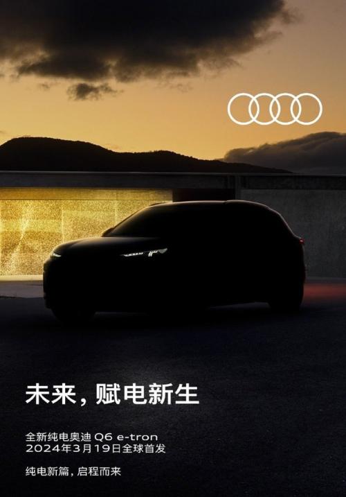 据悉,奥迪Q6 e-tron将于3月19日揭开神秘面纱,全球首发亮相。这款新车基于先进的PPE平台打造,被誉为保时捷Macan(参数|询价) EV的“小弟”。值得关注的是,位于吉林省长春市的奥迪PPE高端电动汽车工厂预计将在2024年底竣工,而Q6 e-tron正是该工厂的重磅产品。因此,国产版Q6 e-tron的上市时间可能推迟到2025年。