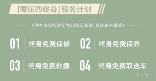 零压四终身服务计划包括:1、终身免费保养;2、终身免费保修;3、终身免费救援;4、终身免费取送车。