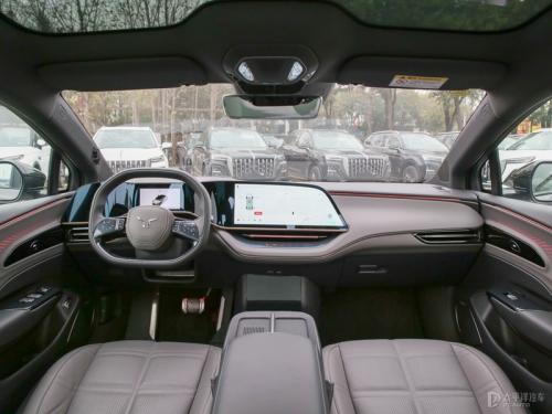 内饰方面,EH7遵循环抱式布局,悬浮中控台突显现代科技感。座椅、发光表皮和音响饰板采用参数化排列的喀纳斯波纹设计,灵感来源于喀纳斯湖的波纹效果。车内配备了1.96平方米的超大全景天幕,提供了超越第二排座椅的宽敞顶部视野,并具备超过99%的紫外线防护能力和超过80%的隔热率。
