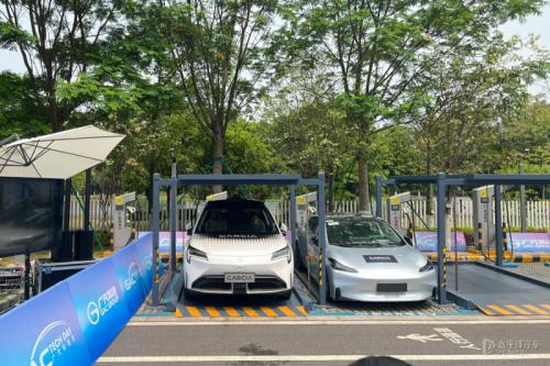 现场演示了两种自动泊车方式,其中一种是面向断头路倒车入库靠近断头路一边的垂直车位,驾驶员在车内只要选好目标车位,基本双手无需接管就能完成整个倒车动作。在此过程中,整体表现就像一个老司机,它会先找一个宽敞的地方把车身调过来,然后拿了大概2-3手就把车停进去,两边车轮没有压到机械车位的边缘。