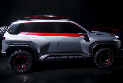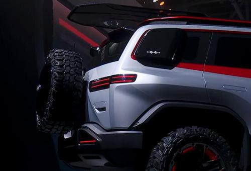 车身侧面,新车展现出了很强的肌肉感,车身线条较为柔和,不过前后轮眉的粗犷造型,配合上越野轮胎,给人一种拉力车的既视感。车尾部分,外挂式备胎、车顶扰流板与造型纤细的尾灯组,看上去也是独具特色。