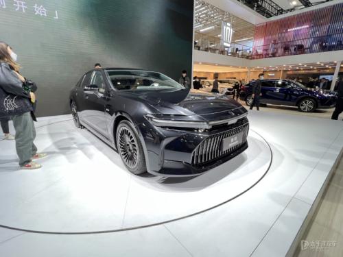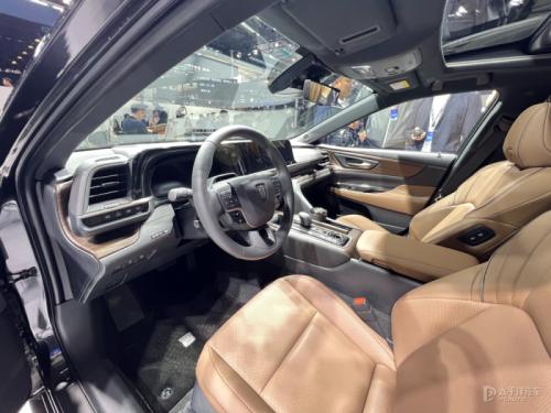 内饰方面,新车座舱使用了真皮与木质饰板的组合,营造出一种豪华氛围感。车内前侧搭载了双12.3英寸的全液晶仪表盘和中控屏一体式双联屏组合。