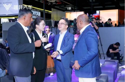 北京车展哪吒汽车展台上,和众多来自全球的合作伙伴相聚,哪吒汽车正式与埃及经销商集团NATCO汽车集团、肯尼亚经销商HIVIEW签订了合作意向协议,标志着哪吒汽车首次进入非洲市场,NETA全球化布局进一步扩大。