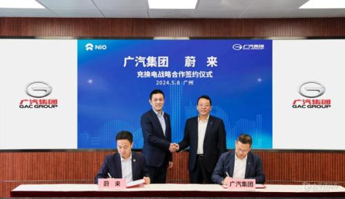 5月8日,蔚来与广汽集团在广州签署充换电战略合作协议,双方将在换电产业涉及的电池标准、换电车型研发及定制、电池资产管理及运营、换电服务网络建设及运营等领域开展全方位、多层次的深度战略合作,并推进双方自有充电平台互联互通。