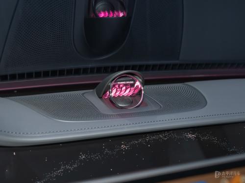 车辆中控台设计有星河画卷饰板,内部星河画卷首卷主题为“丝绸之路”。通过抽象化设计,用点缀元素汇聚成星河版“丝绸之路”。并在中控台中部设计星环散射体,设计灵感源于宇宙星环,采用臻美水晶工艺,由25道打磨工序造就,内置多颗独立灯光。