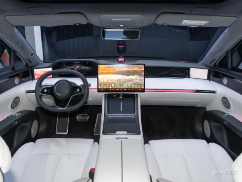 享界S9整个座舱遵循中正对称的设计结构,通过智能星环设计,将未来科技与奢华风格完美融合,塑造出开阔、通透座舱空间。前排采用星环双露台设计,强调横向秩序,带来宽敞的视野感受。值得注意的是,车内的中控扶手和门板木材质为天然实木,最大限度保留原始自然纹理的完整性,而车内的皮质均是Nappa真皮。