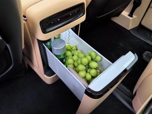 岚图新梦想家一次性安排妥当,大冰箱尺寸一步到位,创新点在于从前排扶手箱及后排抽屉式拉取均可开启,前排无需反手去够冰箱里的饮料。要注意的是,这可不单单是冰箱,而是覆盖温度范围更宽泛的多功能冷暖箱。温度范围为制冷:-6℃~15℃ ,加热:30℃~50℃,再次赢得赞誉。