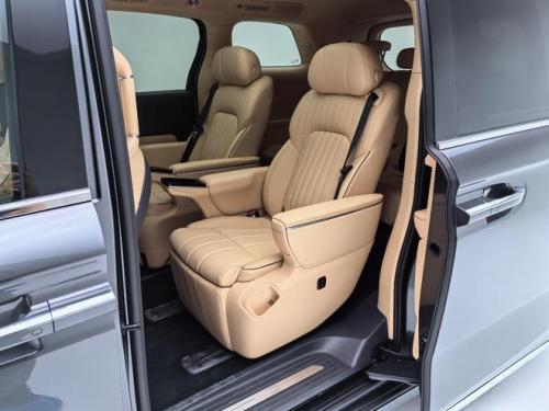 第三排座椅的出色之处在于同样能够电动调节,支持电加热,整体空间体验充分展现了大型MPV的先天空间优势,不局促,舒适度极佳。座椅的厚实度和舒适度都达到豪华上乘水平,当然,其弊端是第三排座椅收纳后不能与地板完全平齐,在实际使用中,除了极大型物件会有阻碍外,感受并不明显,况且较大重物还是用载重较大的货车运输更为合适,这不仅是为了避免车辆受损,更是关乎行车安全。