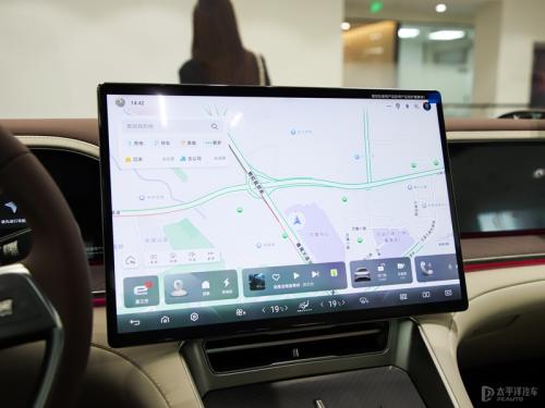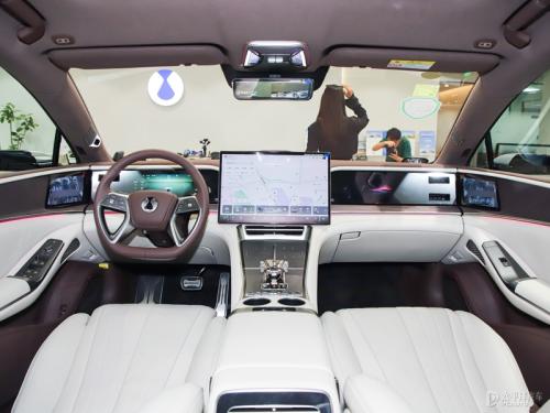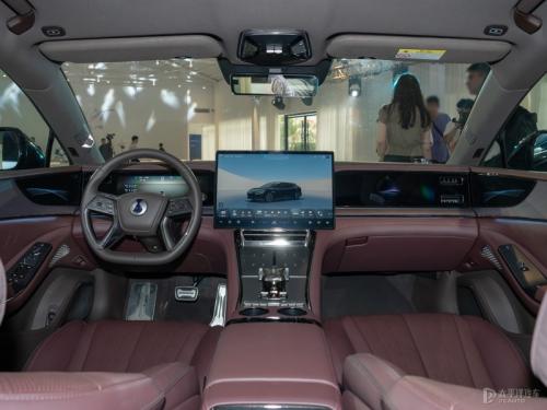 内饰方面,腾势Z9GT采用腾势2.0座舱设计,整体氛围颇显豪华,布局风格与腾势N7类似,采用了三联屏设计。实拍车型采用全新四辐样式方向盘设计,略显稳重,契合其行政豪华车等的定位。在用料方面,腾势Z9GT采用大面积真皮软包材质,并采用双拼撞色设计,搭配水晶材质的换挡机构,营造出不错的内饰豪华舒适感。
