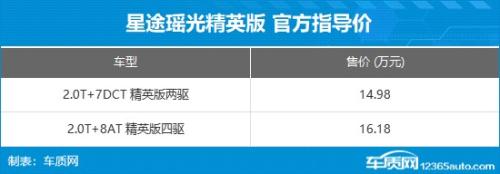 日前,星途瑶光精英版车型正式上市,新车推出2款车型,售价14.98-16.18万元。作为新增车型,其在配置上进行了部分调整,并新增加绿色车漆,看上去十分时尚。动力方面,新车搭载2.0T发动机,匹配7速湿式双离合和8速手自一体变速箱。