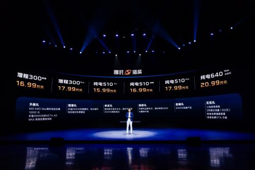 8月25日,哪吒S猎装正式上市,新车六个版本,包含纯电和增程,价格区间为15.99万元~20.99万元。增程版共推出两款车型:16.99万元的增程300标准版、17.99万元的增程300 Pro版。纯电版共推出四款车型, 15.99万元的510Air版,16.99万元的纯电510标准版和17.99万元的纯电510 Pro版,以及20.99万元的640AWDMax版。此外,全球首搭宁德时代一体化智能底盘的CIIC 800V版也正式开启预售,预售价为18.99万元起。
