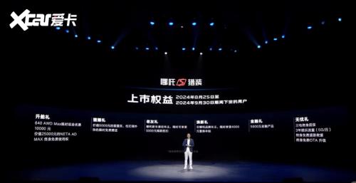 哪吒汽车还为购车者提供多项权益。即日起至2024年9月30日,哪吒汽车为首批哪吒S猎装支付大定的用户推出限时购车礼遇。