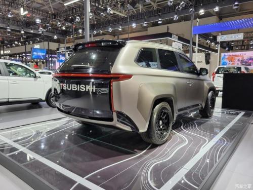 侧面来看,新车设计了全新的宽体包围,以至于后门被隐藏取消。相比之下,尾部夸张的灯组结构和巨大的MITSUBISHI英文LOGO,给人强烈的冲击感。