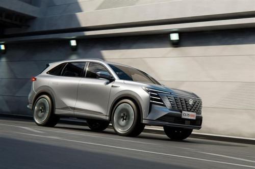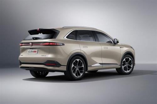 车身侧面,第四代CS75PLUS整体轮廓采用标准的SUV比例设计,视觉效果较为厚重,其中前后翼子板造型圆润饱满,搭配上外凸的上腰线与内凹的下腰线,组成了极强的立体感与力量感。同时,新车还采用了隐藏式车模把手设计,使得整车多了一丝新能源元素。车身尺寸方面,新车的长宽高分别为4770/1910/1695(1705)mm,轴距为2800mm。