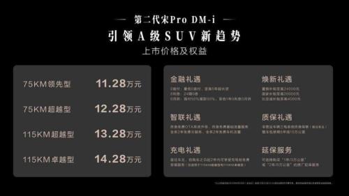 【天津,9月23日】比亚迪再次发力新能源市场,推出了备受期待的第二代宋Pro DM-i。这款全新的紧凑型SUV以11.28万元至14.28万元的价格区间正式进入市场,凭借其卓越的产品力,有望继续巩固比亚迪在A级SUV细分市场的领先地位。