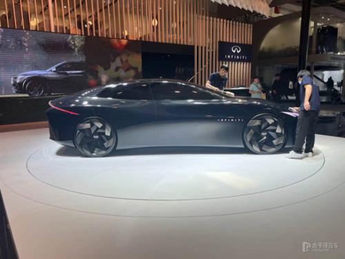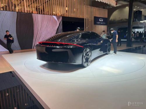 新车车定位于一款纯电动Fastback轿跑车型,从外观上看整车充满了棱角和折线,拥有很干练和精致的车型轮廓。夸张的前脸充满了视觉冲击力,也许这也会成为以后英菲尼迪品牌纯电车型的设计思路。封闭式的格栅给了设计师更大的设计空间,前格栅上方布满了显眼的LED灯带造型。上半部分使用了类似钢琴琴键的设计,下方则参考了英菲尼迪的品牌LOGO,彰显了自信。