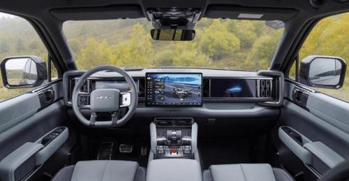 越野配置方面,豹5采用非承载式车身设计,拥有16种驾驶模式,支持豹式掉头,另外本次新车还搭载了三把差速锁,分别是前/后差速锁与能量中锁,并在不同区域对前后轴扭矩进行控制与能量分配。值得一提的是,豹5的云辇旗舰版所搭载的云辇-P智能液压车身控制系统,除了能调节车身高度,也能在越野时进行主动调整,提升舒适性,拥有跟仰望U8一样的功能,一键找平功能、四轮高度独立调节、舒适停车等功能。涉水深度则超过790mm,涉水深度表现不错,同时预留了涉水喉的安装位置,能够进一步提升涉水性能。