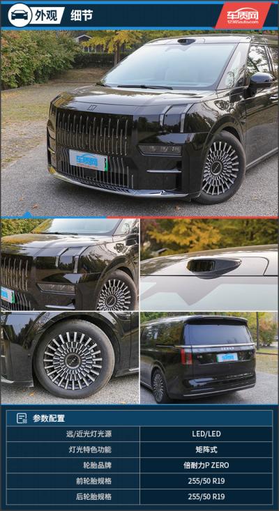 轮胎方面,评测车搭载了倍耐力P ZERO系列轮胎,兼顾性能、安全与舒适性,价格也较为昂贵,符合整车调性,轮胎规格则为255/50 R19。