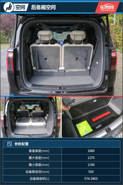 作为一台轴距超过3米2的中大型MPV来说,乘坐空间方面表现无须担心。身高为178cm的体验者分别进入前/第二/第三排,均能获得不错的腿部和头部余量。不过,由于评测车的第二排中间无过道,所以想要进入第三排还需调节第二排座椅。