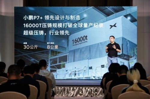 小鹏P7+基于16000吨超级压铸设备打造,打破了全球最大量产压铸规模记录,并首次实现国内大铸件及钢侧围的车身量产。全新工艺让车身减少2000个焊点,集成零件167个,实现30kg的减重,带来8公里的续航提升。