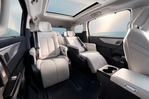 新车内饰采用新科技豪华设计风格,集成高档环保材质、精细做工和创新科技功能,打造全面进阶的品质空间。车内人体接触部位大量采用Nappa真皮等高档软材包覆,营造豪华温馨氛围,展现不凡品味。创新的Smart Touch光感触控板将座椅记忆等功能按键隐藏在金属拉丝质感的饰板中,以创新科技表达美学意境;隐藏式电动出风支持分区语音唤醒功能,还提供扫风、对人吹、避人吹等贴心的吹风模式,体现以人为本的科技关怀;智能防夹电动前天窗和超大全景后天窗为三排乘员都带来通透的视觉感受,让人心情舒畅。