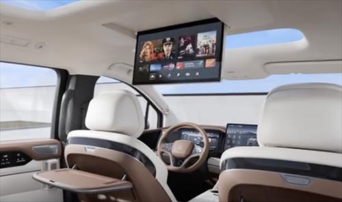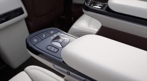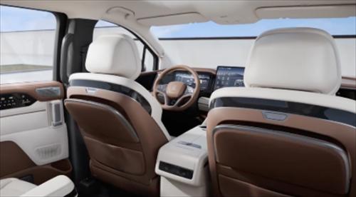 从发布的内饰官图来看,新车采用了家族式设计,并使用了白棕双拼配色组合,看起来更加豪华有质感。中控台为三屏设计,中间是大尺寸悬浮式中控屏,两侧为嵌入式液晶仪表盘和副驾娱乐屏。另外,新车还在B柱位置设计了扶手,后排配有吸顶娱乐屏、折叠小桌板、车载冰箱、前后双天窗等配置。