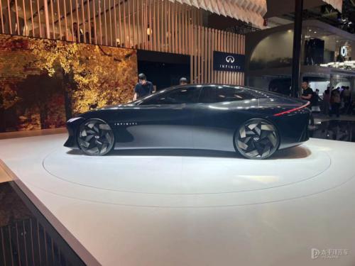 新车车定位于一款纯电动Fastback轿跑车型,从外观上看整车充满了棱角和折线,拥有很干练和精致的车型轮廓。夸张的前脸充满了视觉冲击力,也许这也会成为以后英菲尼迪品牌纯电车型的设计思路。封闭式的格栅给了设计师更大的设计空间,前格栅上方布满了显眼的LED灯带造型。上半部分使用了类似钢琴琴键的设计,下方则参考了英菲尼迪的品牌LOGO,彰显了自信。