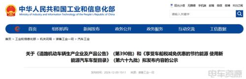 关于《道路机动车辆生产企业及产品公告》(第390批)和《享受车船税减免优惠的节约能源使用新能源汽车车型目录》(第六十九批)拟发布内容的公示