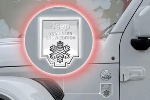细节方面,牧马人雪地版前/后拖车钩和刹车卡钳均加入了红色元素,进一步提升了整车的运动气息。此外,新车提供电动脚踏板和镀铬装饰油箱盖,在前翼子板区域还配备有代表特别版身份的雪地版专属徽章。