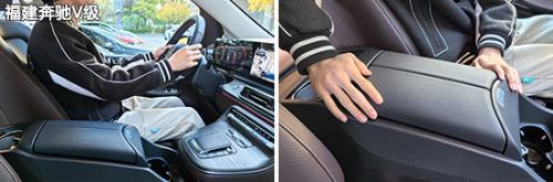 前排中央扶手箱方面,虽然四款车型均不支持前后或角度调节,但是只有福建奔驰V级不能为驾驶员的手肘提供有效支撑。不过在我看来,其实另外三款车型的整体表现也难言优秀,只是勉强达到了及格水平。毕竟对于一款中大型MPV来说,未配备独立的座椅扶手,且中央扶手箱也不支持调节,无法主动适应驾驶员坐姿,肯定还是存在优化空间。