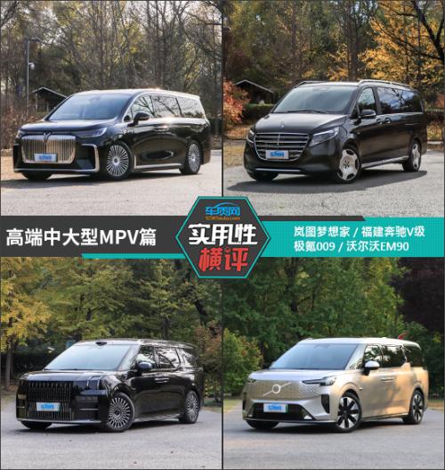 众所周知,凭借着宽敞灵活的空间、丰富的配置以及良好的乘坐舒适性,中大型MPV车型通常就意味着更高品质的出行体验。随着人们生活水平不断提高,这类车型的使用场景也开始从相对单一的商务接待逐渐拓展至家庭出行。在往期的“日常实用性测试”中,我们曾测试过不少高端中大型MPV,涵盖合资以及自主品牌,本次挑选的四款对比车型分别为岚图梦想家、福建奔驰V级、极氪009以及沃尔沃EM90。接下来就从日常实用性测试的角度进行横评,看看哪款车型的综合表现更好。
