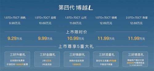 5月13日,新款吉利博越L正式上市,此次共推出5款配置,售价区间为9.99-12.69万元,限时价9.29-11.99万元。作为改款车型,新车针对内外设计进行升级,并配备Flyme Auto 1.8最新版车机系统。