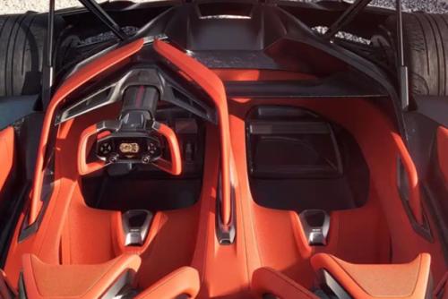 新车内部犹如战斗机座舱一般科幻,主驾配备多功能赛车方向盘和防护装置,主/副驾驶座椅则采用一体环抱式造型,包裹性十分出众。