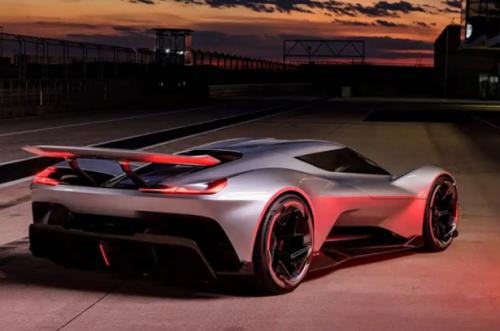 车身侧面线条十分动感,腰部巨大的通风口内置风扇,高速行驶时可以根据空气动力学自动调整开闭,实现动态空气平衡。值得一提的是,新车并未采用常规的车门设计,前机舱盖和车顶为赛车一体式设计,可以自动向前掀起,驾驶员便可进入车内。尾部配备巨型扩散器和主动升降尾翼,赛道属性拉满。