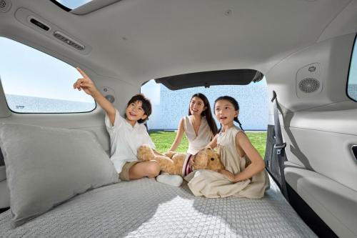 空间方面,吉利银河M9车身尺寸为5205mm*1999mm*1800mm,轴距超3米,以5.2㎡同级最大车内面积和同级最优88.3%得房率,打造“全家人的移动头等舱”。其中,“三进大宅,奢享六座”空间布局设计,真正实现三排平权。一排主驾“撑腰椅”,配备同级独有转向自适应侧翼支撑、自适应腰托,副驾“宠爱椅”带无缝腿托,双50W风冷无线快充,满级科技配置,有排面更体面;二排高清娱乐屏、 9.1L智能冷暖冰箱、隐藏式杯托,完备的奢享座椅配置,尊贵舒适更讲究;三排全尺寸舒适座椅,拥有同级最大150°躺倒角度,配合0.15㎡勃朗峰舷窗,同级最大,通透感拉满。同时,吉利银河M9的百变魔方舒享空间,支持常用空间模式一键8调,拥有双侧沙滩椅模式、三排观影沙发模式、同级独有后排大床房等模式,满配六座与尊享四座均能随心组合,满足用户全场景用车需求。