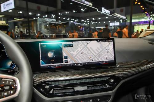 进入座舱,i4 M60延续了现款车型12.3英寸全液晶仪表盘与14.9英寸中控多媒体屏组成的双联屏设计。但车内细节有所提升,方向盘上的“M”标识时刻唤醒驾驶者的性能感知。车内大面积铺设碳纤维饰板,覆盖中控台、门板等区域,不仅在轻量化层面有所助力,更营造出强烈的竞技氛围,让座舱在科技体验与运动属性之间找到完美平衡。