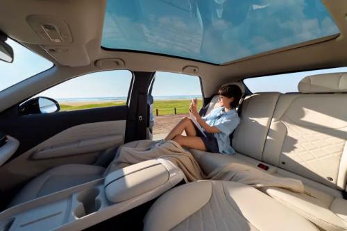 座舱的科技感与便利性配置也较为丰富,全系标配15.6英寸中控屏与8.8英寸液晶仪表,中控屏高频功能常驻界面,操作便捷,分辨率较高,能清晰显示路况信息;仪表台中饰板与门板上饰板连贯设计,形成环抱式科技座舱氛围。全景天幕面积达2.34㎡,为同级最大,搭配全开式电动遮阳帘,可阻挡99.9%的紫外线,遮阳帘支持手机远程控制、无级调节,并能与空调联动,兼顾通透视野与防晒需求。