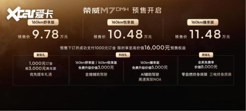 荣威M7 DMH已于成都车展开启预售,预售价9.78万元起,一周内订单已破万。这款长续航中大型豪华轿车将于9月17日正式上市,届时更多购车权益与配置细节全面公布,将以越级实力定义10万级混动家轿新标准。