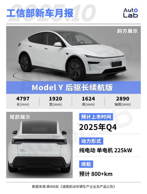 虽然暂时还不知道单电机长续航版Model Y的续航数据,但参考Model 3后驱长续航版830km的CLTC续航里程,Model Y后驱长续航版本预计也能达到800公里左右,它应该也会成为特斯拉SUV产品线中续航最长的车型。