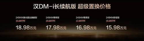 10月11日,比亚迪汉长续航版正式上市,以全面进阶的产品实力再次引领中国品牌向上突破。此次新车推出DM-i长续航版与EV长续航版两种动力选择,其中汉DM-i长续航版共推出4款车型,补贴后售价区间为15.98万至18.98万元;汉EV长续航版共推出3款车型,补贴后售价为17.38万至20.58万元。值得注意的是,在10月31日前完成购车的用户还可享受1万元超级置换补贴,比亚迪更为用户准备了至高价值3.8万元的七大购车礼遇,展现出十足的诚意。