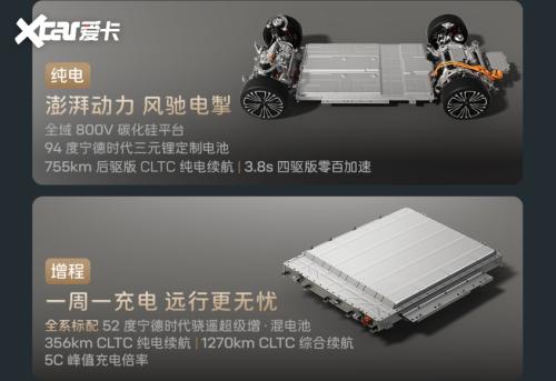 阿维塔12四激光版提供纯电与增程双动力选择,全面覆盖用户多元出行场景。无论是纯电版还是增程版,均标配宁德时代大电池。纯电版电池容量为94kWh,兼顾长续航与高性,后驱版车型CLTC续航达755km,轻松应对跨城出行;四驱版更以3.8秒的零百加速性能,带来媲美超跑的驾驶体验。