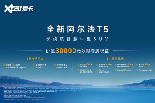 即日起下订全新阿尔法T5,用户还可以享受价值3万元限时专属权益。尤为“王炸”的是,全新阿尔法T5重磅承诺“三电终身质保、电池自燃烧一赔一、8年或15万公里内电池衰减低于70%只换不修”,三重承诺同时给到,行业内只此一家。